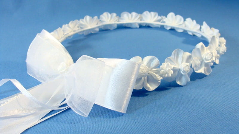 Wianek Ala jest kompozycja atłasowych różyczek, okółków i kwiatków . W zależności od koloru użytych różyczek są 3 warianty wianka Ala.