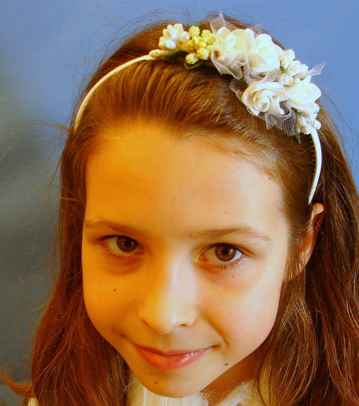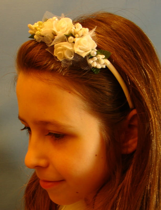 Przepiękna delikatna opaska! Polecam każdemu. Na uroczystość Pierwszej Komunii Świętej kupiłam taką mojej drugiej córce, która byłą u komunii rok wcześniej. Obie dziewczynki wyglądały przepięknie. Druga córka miała także wianek komunijny z tego sklepu - wianek o nazwie Alicja. Jeszcze raz polecam wszystkim.