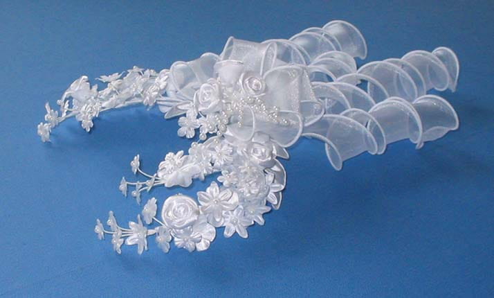 Półokragły wianek jest bardzo ładnych a zarazem niezwykle charakterystycznym wiankiem. Stworzony jest on na kształt łuku. Wianek Półokrągły jest bardzo bogato zdobiony: kwiatkami, różyczkami, perełkami, lokami oraz kokardą.