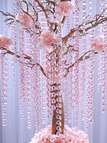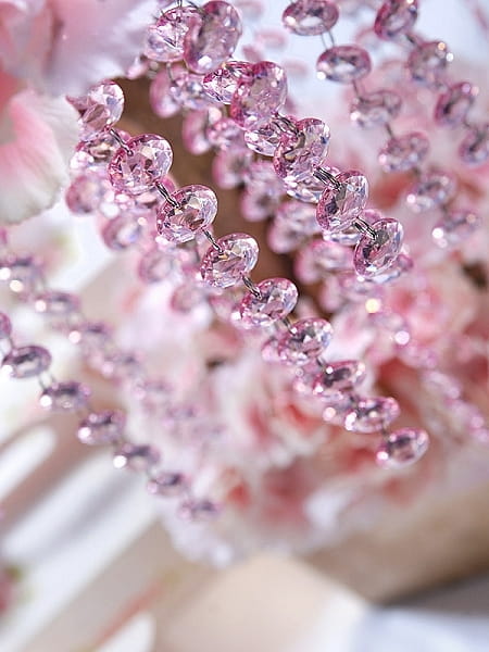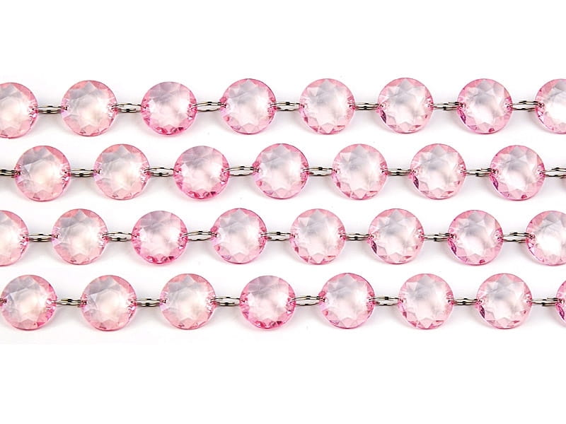 Girlanda kryształowa różowa , długość 1 metr.Wykonana z akrylu. Średnica kryształowego kółka ma 18 milimetrów. Idealna do udekorowania stołu, świecznika, żyrandola.