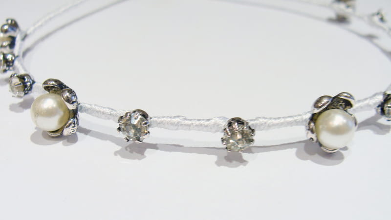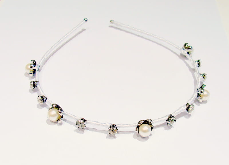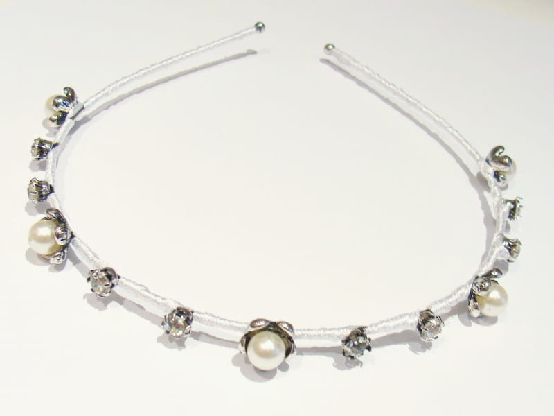 Subtelna opaska zdobiona perłami i brylantami .