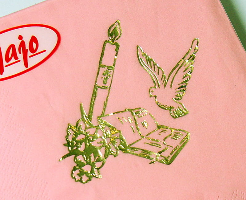 Serwetki komunijne Gajo - złoty motyw na różowym tle