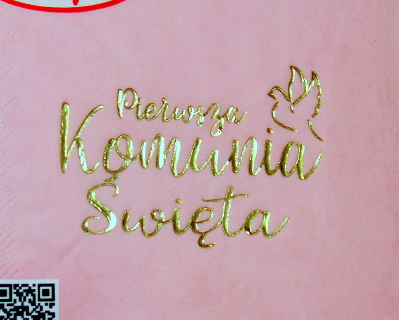 Serwetki komunijne Gajo - złoty motyw na różowym tle