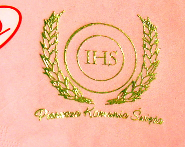 Serwetki komunijne Gajo - złoty motyw na różowym tle