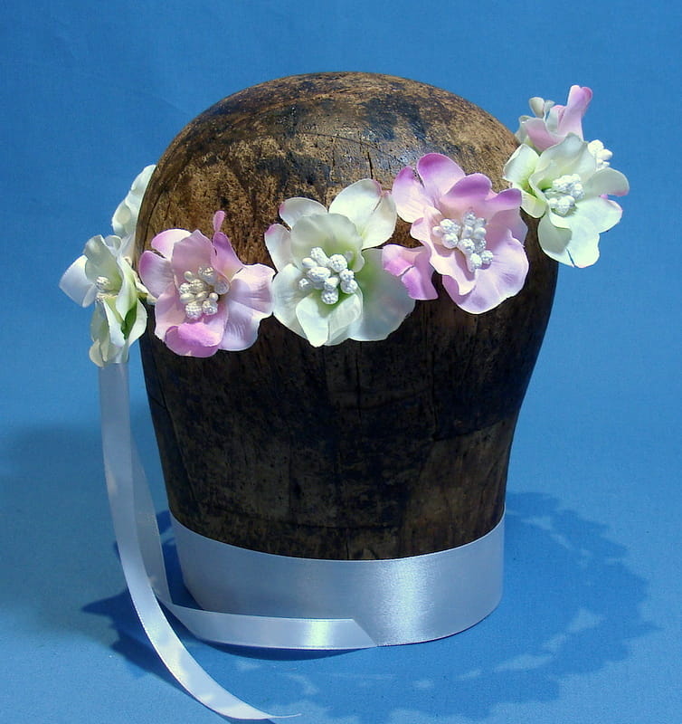 Wianek zdobiony kwiatami, które doskonale imitują żywe rośliny.