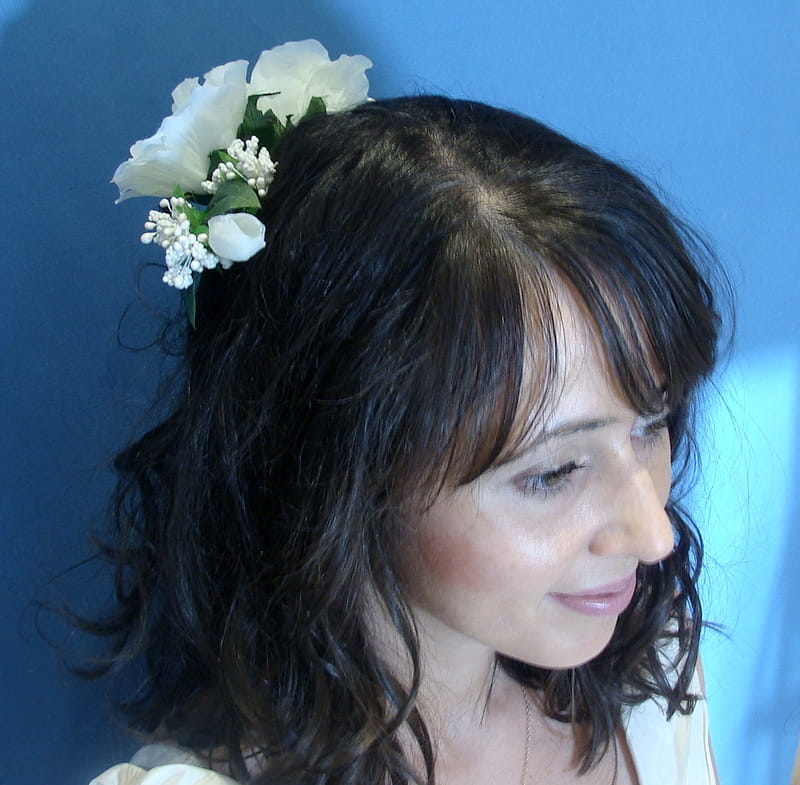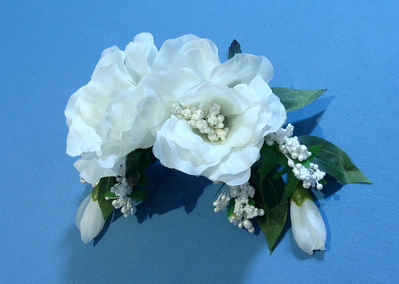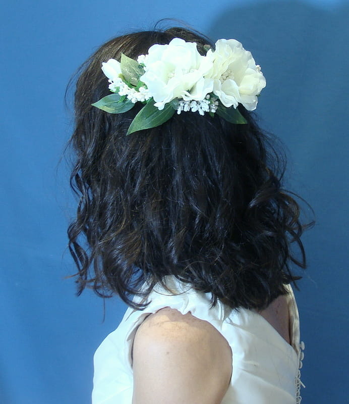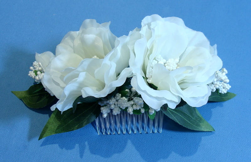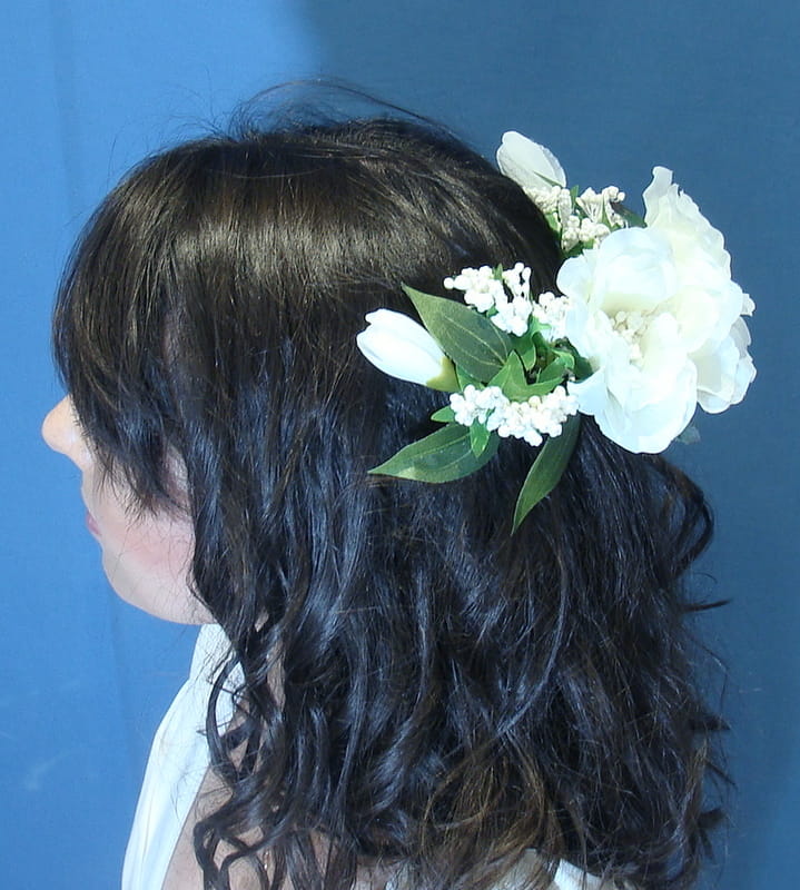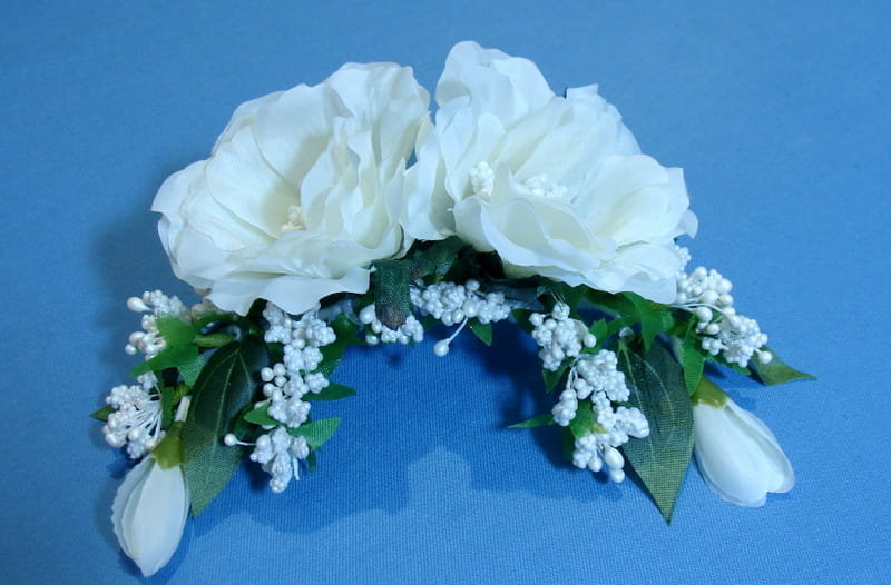 Stroik zdobiony kwiatami, które perfekcyjnie imitują żywe eustomy.