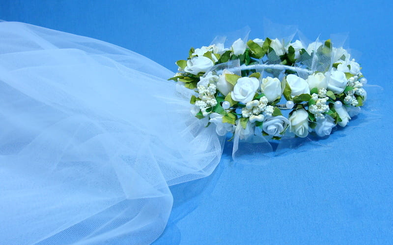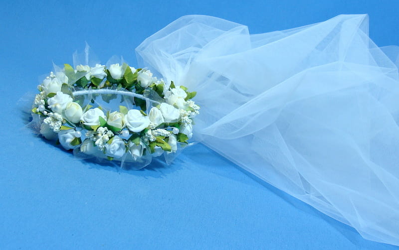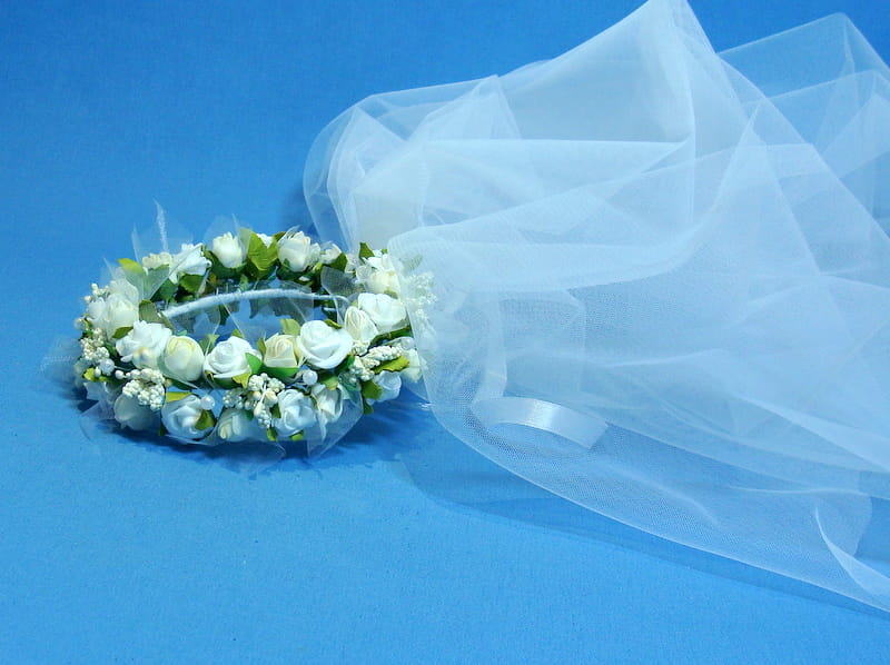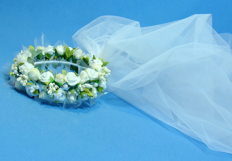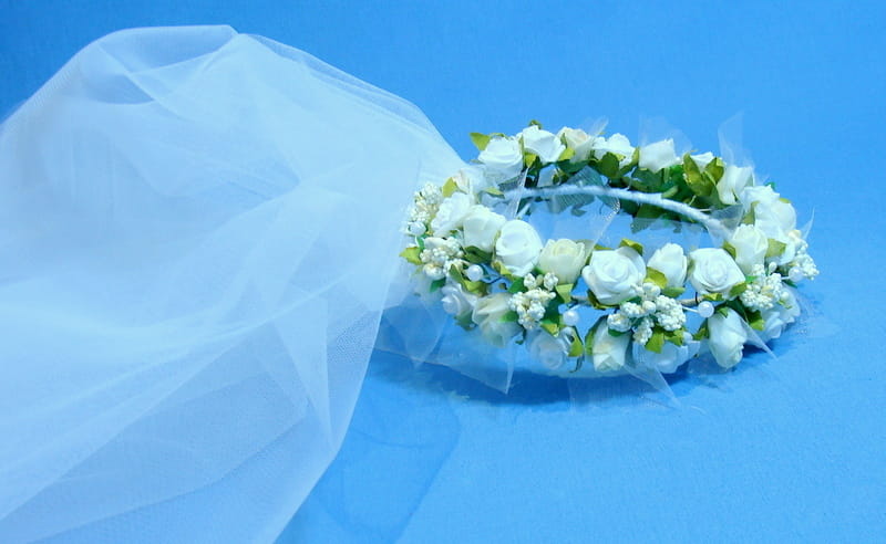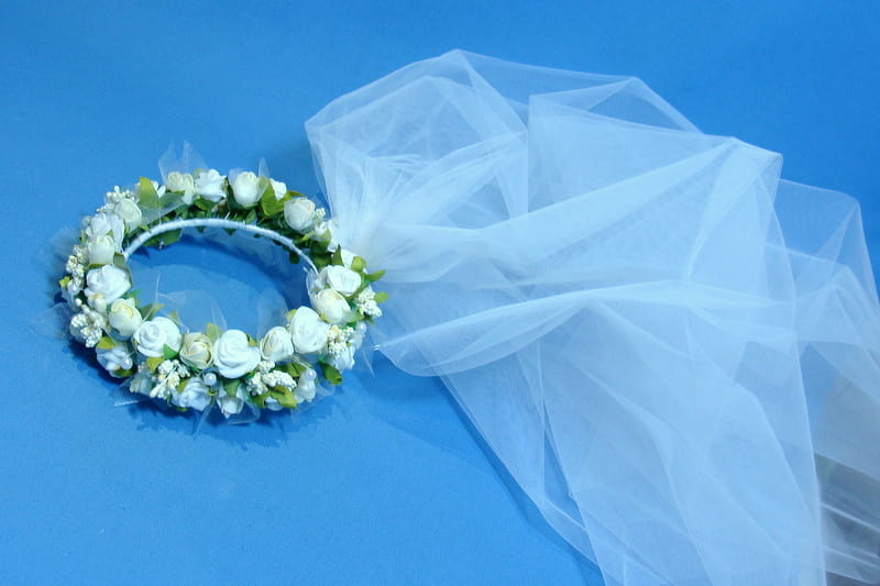 Wianek na kok Celinka z gładkim , dwuwarstwowym welonem o wymiarach 60/80 cm. Welon z grzebykiem do zamocowania we włosach nad wiankiem.
