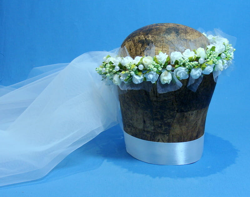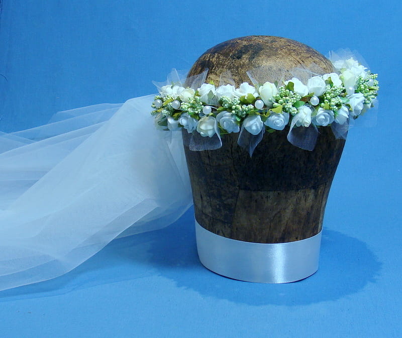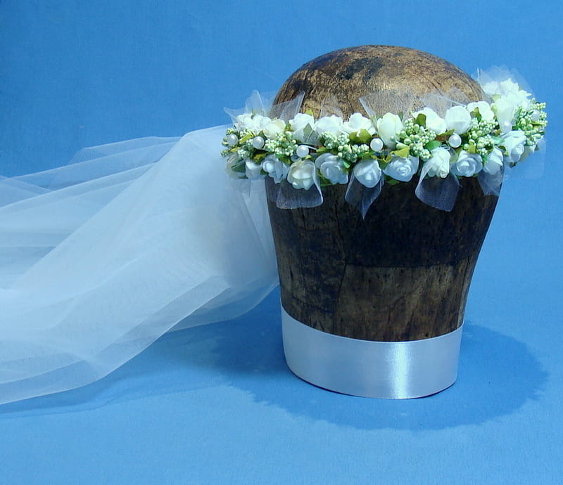 Wianek Celinka 4 z gładkim , dwuwarstwowym welonem o wymiarach 60/80 cm. Welon z grzebykiem do zamocowania we włosach nad wiankiem.