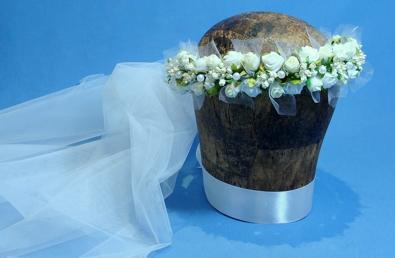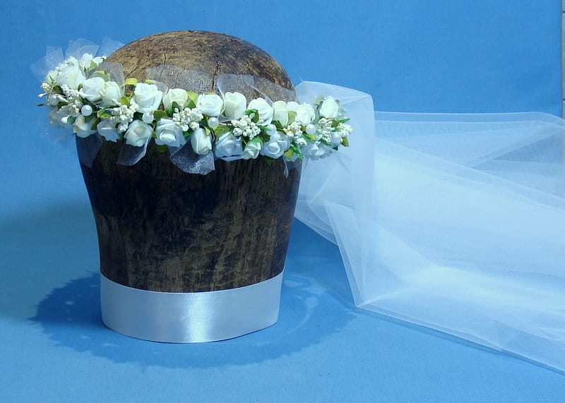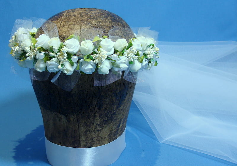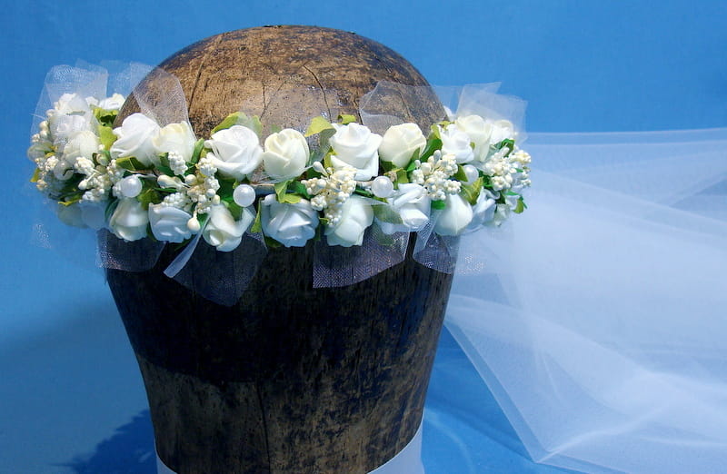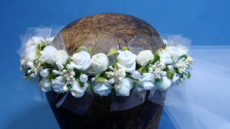 Wianek Celinka 5 z gładkim , dwuwarstwowym welonem o wymiarach 60/80 cm. Welon z grzebykiem do zamocowania we włosach nad wiankiem.
