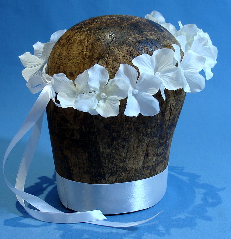 Wianek zdobiony kwiatami, które doskonale imitują żywe rośliny.